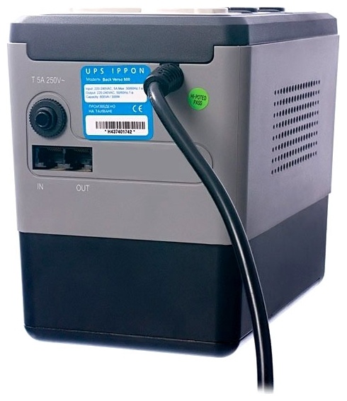 ИБП IPPON Back Verso рекомендованы для домашнего использования и позволяют подключать до шести (!) устройств одновременно: 4 евро-розетки черного цвета обладают батарейной поддержкой и ещё 2 дополнительные белые розетки ограничены функционалом сетевого фильтра. Также предусмотрены специальные гнезда для защиты телефонной линии.