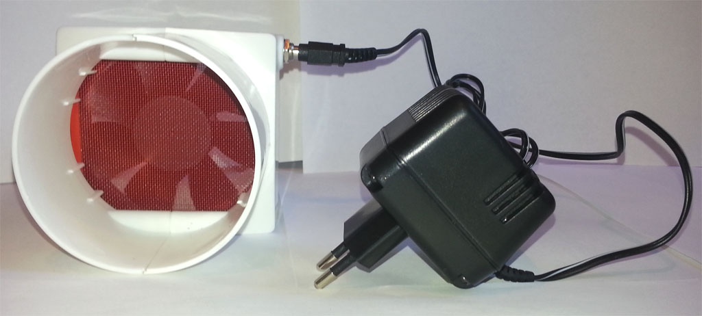 Вставить штекер блока питания в гнездо на стенке муфты. Вилку блока питания вставить в розетку с напряжением 220 вольт. Вентилятор включится. Для остановки вентилятора необходимо извлечь вилку блока питания из розетки.