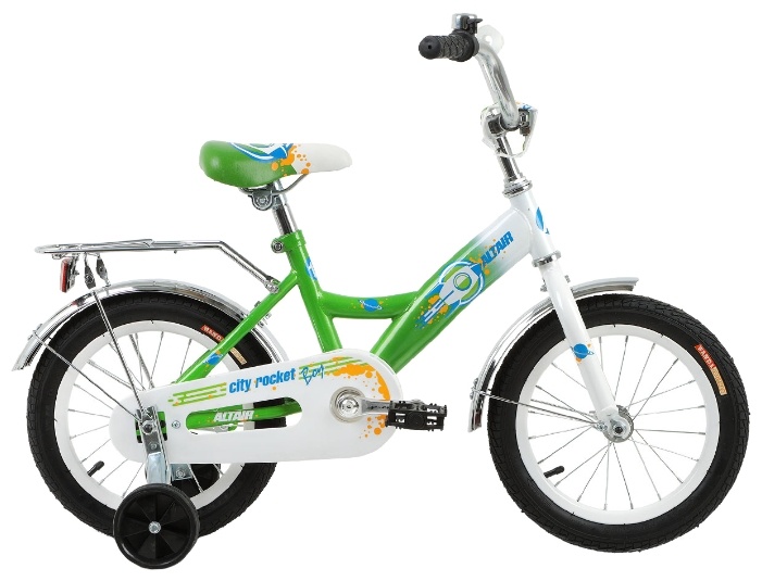 Велосипед имеет все необходимое дополнительное оборудование: поддерживающие колеса (которые при необходимости можно снять), защита цепи, велобагажник и звонок.