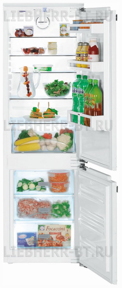 Встраиваемый двухкамерный холодильник класса Comfort с нижним расположением морозильной камеры.
