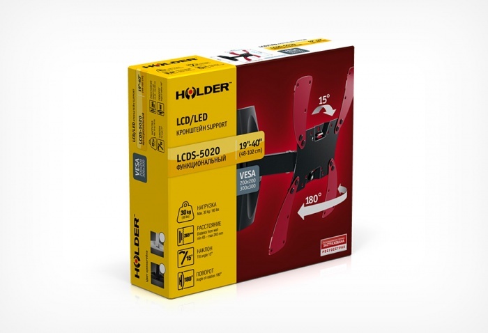 Диагональ: 20″ – 40″ Нагрузка: 45 кг. Крепежные отверстия: 75х75,100х100,200х100,200х200,200x300,300x300 мм. Угол наклона: – 3°+15° Расстояние от стены: 63 мм. Цвет: черный
