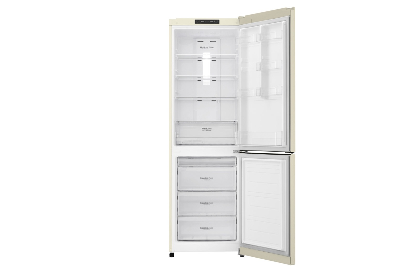 Система многопоточного охлаждения (Multi Air Flow) равномерно распределяет холодный воздух для того, чтобы продукты оставались свежими дольше даже на верхних полках холодильника.