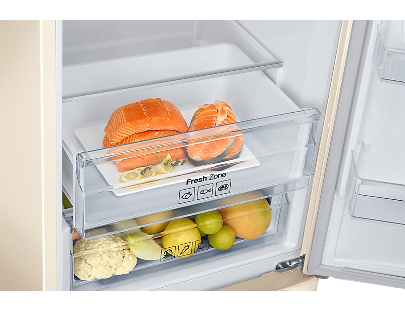 Зона свежести (Fresh Zone) представляет собой выдвижной ящик, в котором создаются идеальные условия для хранения мяса и рыбы, поскольку в нем поддерживается оптимальная температура и эти продукты долго сохраняются в наилучшем виде.