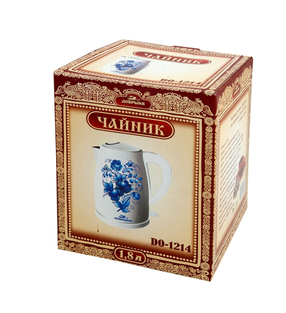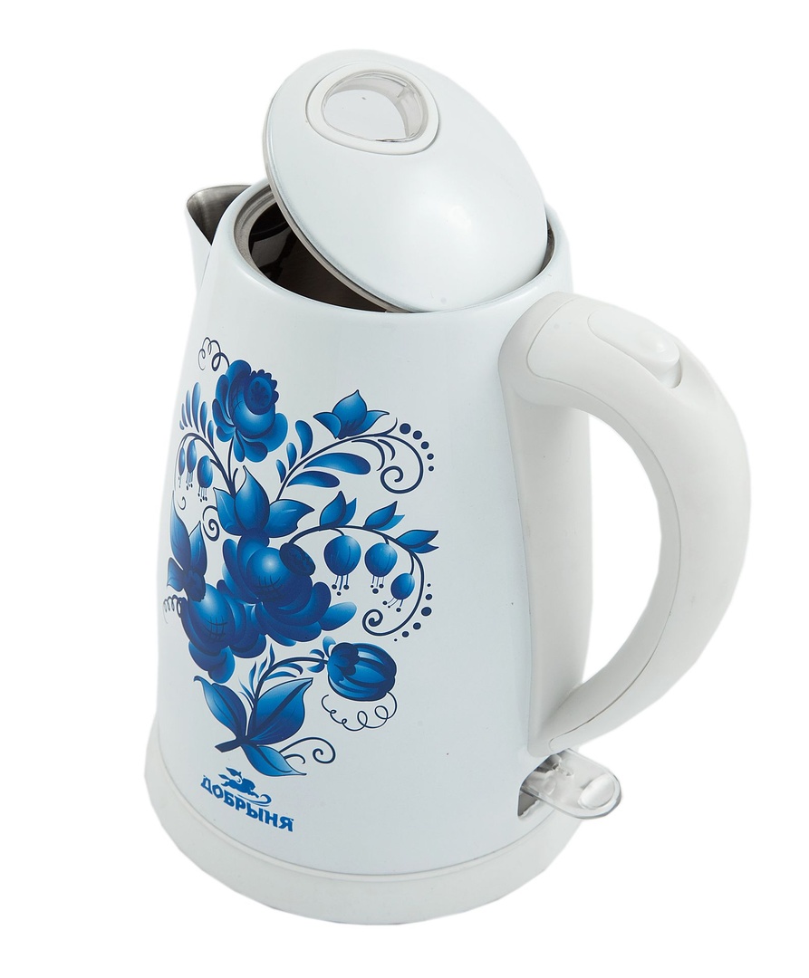 Чайник Добрыня DO-1214 «согреет» вас уже одним своим видом: стильный рисунок на корпусе «классическая хохлома» превратит устройство в настоящее украшение вашей кухни или офиса.