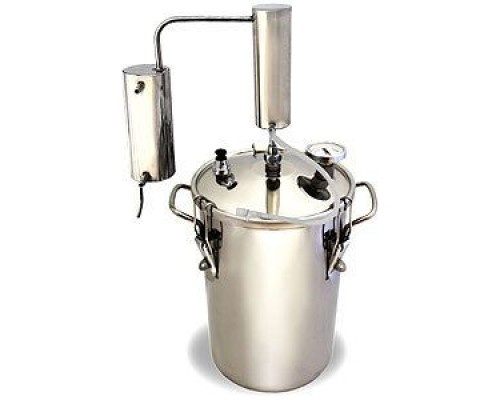 Дистиллятор «Элит 14T» – это устройство, для полноценной работы которого Вам не потребуется проточная вода. Бак модели «Супер-Элит 14Т» произвден из пищевой стали, которая характеризуется непревзойденной устойчивостью к высочайшим температурным показателям. Этому дистиллятору под силу двух литров жидкости за 60 минут. Данное устройство работает по следующему принципу: на начальном этапе в 14-литровый резервуар заливается необходимым объемом жидкости, далее компоненты согласно рецепту, а после – поставить прибор на газовую горелку.