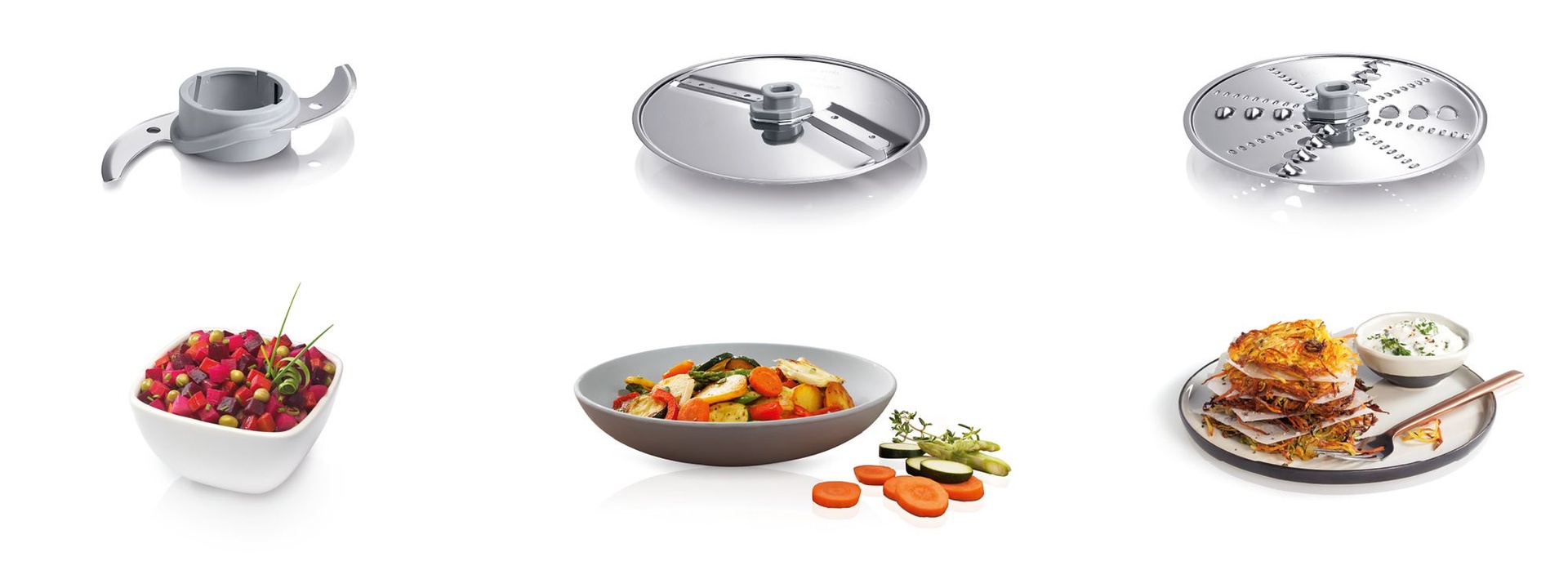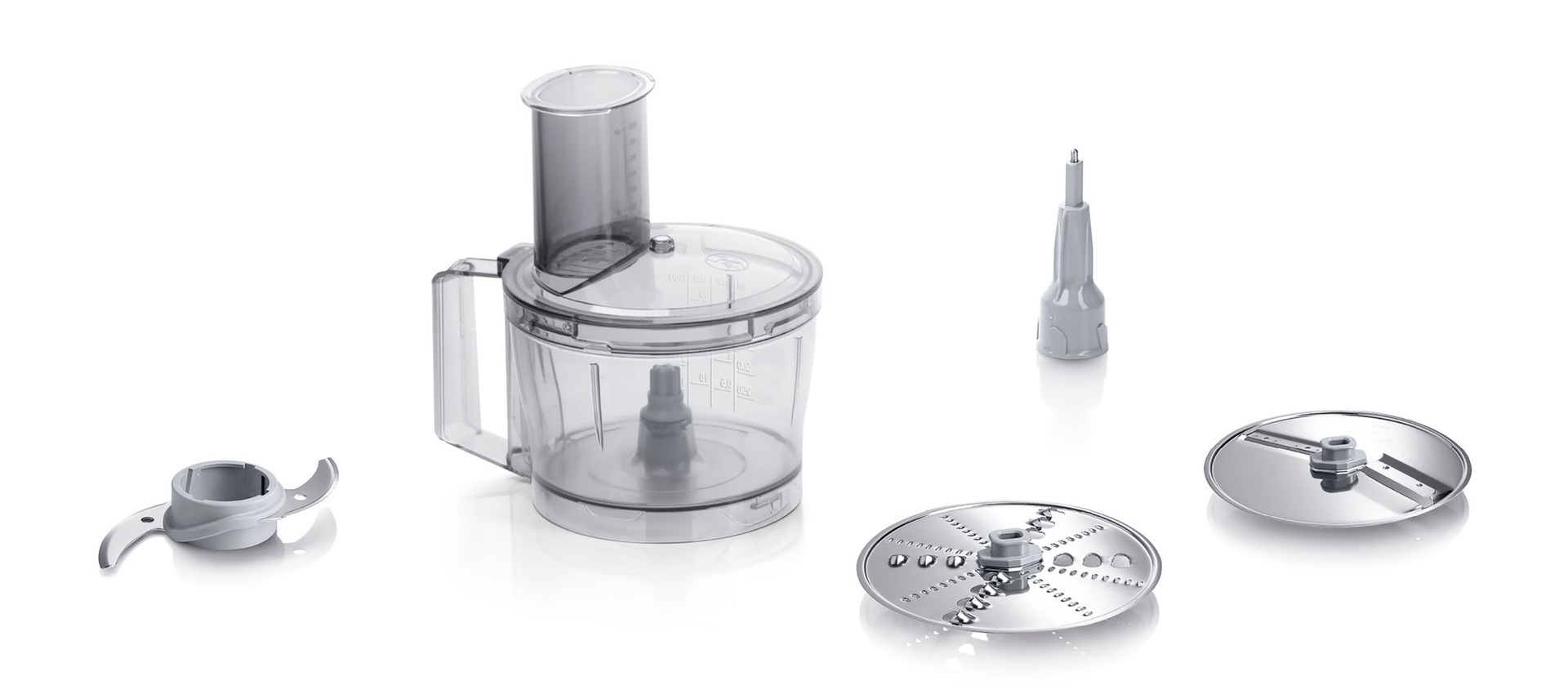 Многофункциональность: терка, шинковка, помол, измельчение и многое другое - благодаря таким насадкам как универсальный нож и цельнометаллические диски для шинковки крупными и мелкими ломтиками.