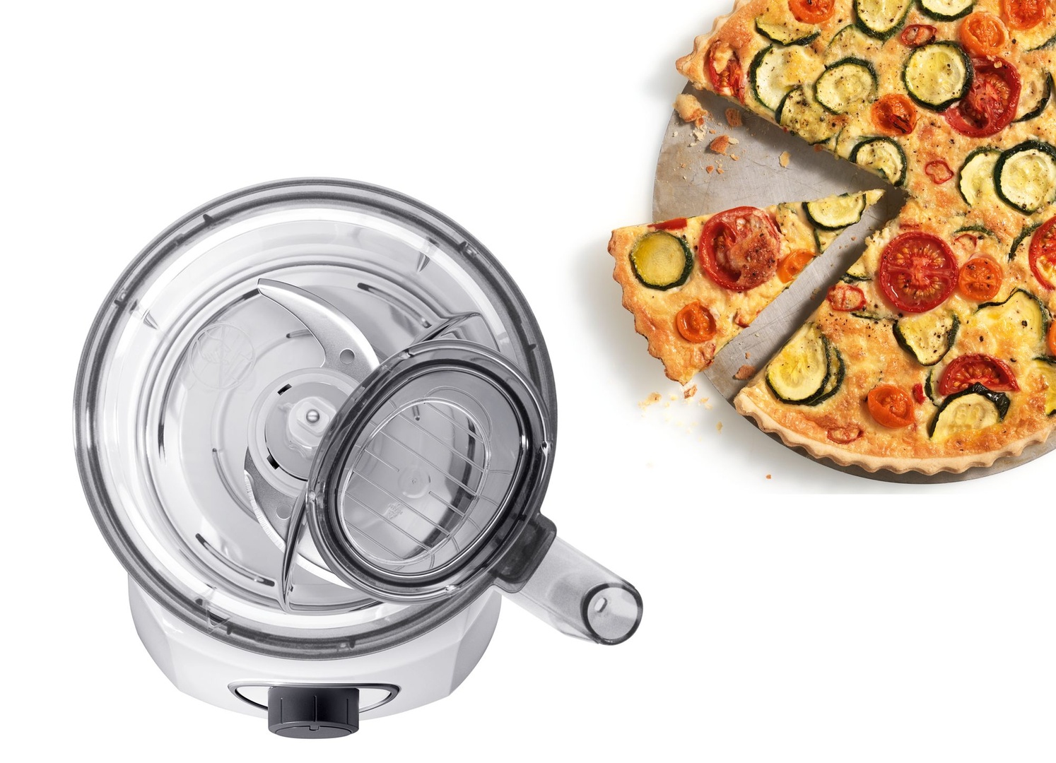 Компактная вертикальная конструкция прибора экономит место на кухонном рабочем столе. Отличные результаты за короткое время: благодаря мощному мотору 800 Ватт, 2 скоростям и дополнительному импульсному режиму.