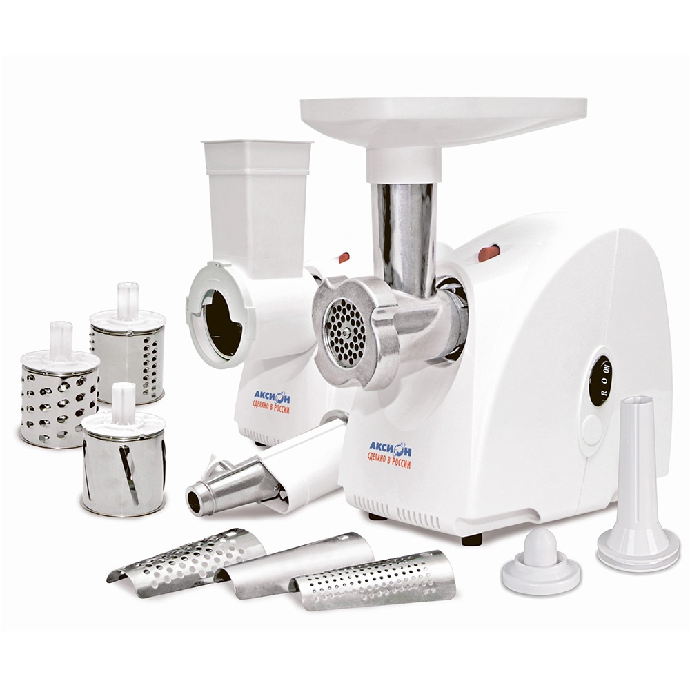 Бытовые шнековые электрические мясорубки производства ООО Концерн «Аксион» предназначены для приготовления фарша из мяса, рыбы, грибов; измельчения овощей, фруктов; получения пюреобразных масс из ягод; профилирования теста.
