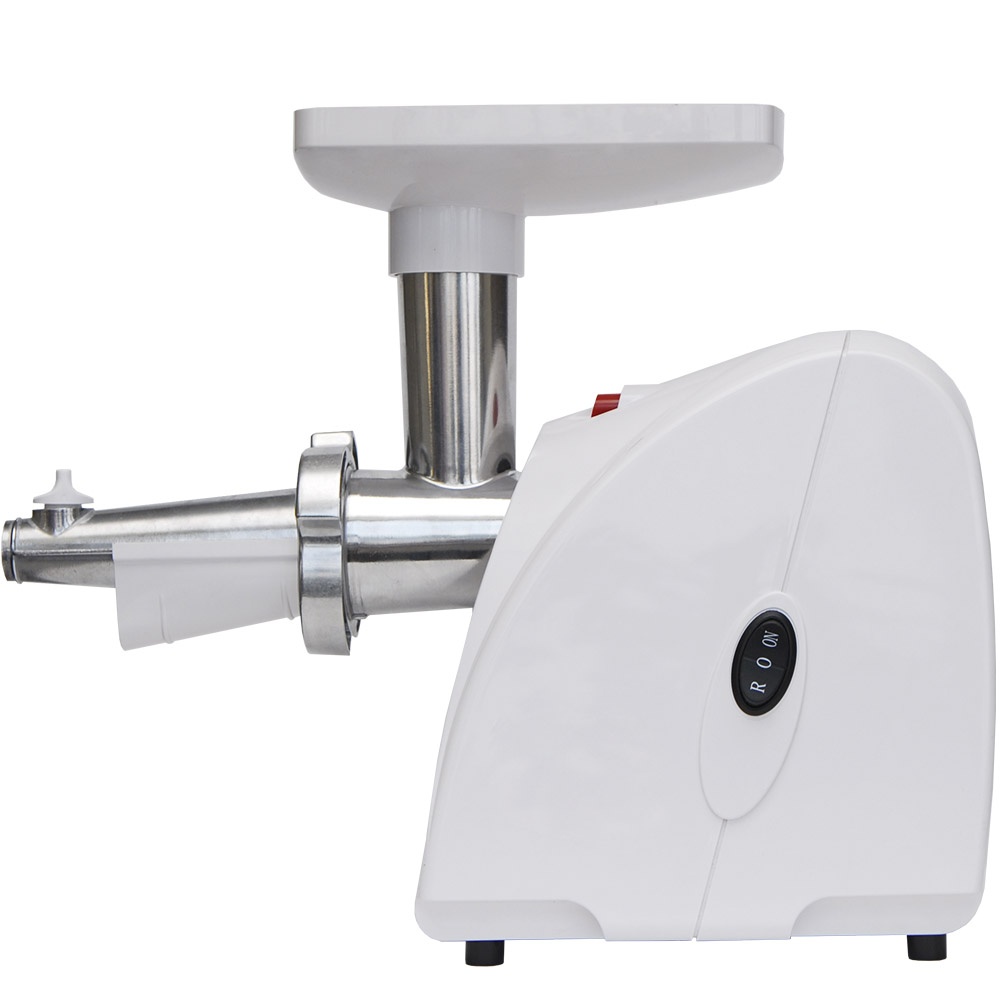 Мощность: 1500 Вт. Материал корпуса: пластик. Материал лотка: пластик. Производительность: 1,66 кг/мин. Система реверса: есть. Насадка-соковыжималка: нет. Насадка для шинковки.