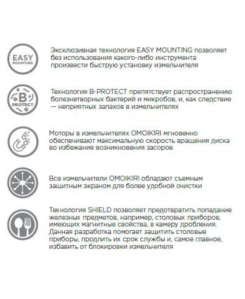 Мощность: 1 л. Скорость вращения диска: 2800 об./мин. Напряжение: 220-240 V Способ переработки отходов: проточный. Тип мотора: магнитный мотор. Потребляемая мощность.