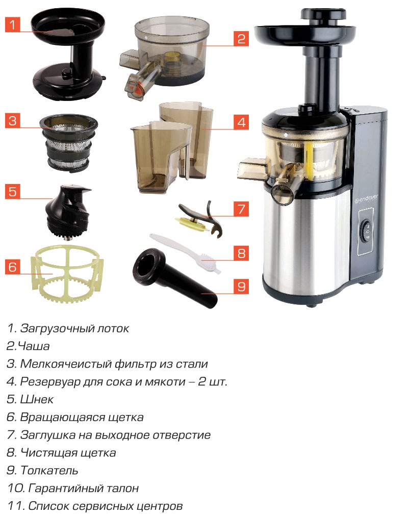 Функциональные особенности шнековых соковыжималок Endever