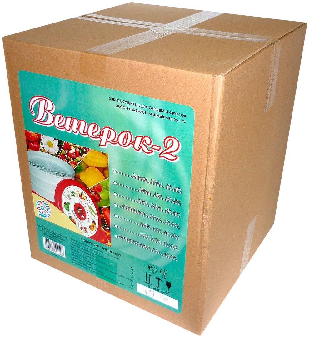Сушилка Ветерок 2 на 6 поддонов является самой большой модель, объем которой составляет 30 литров. Можно сушить: фрукты, овощи, травы, корнеплоды, грибы и ягоды, а также вялить мясо и рыбу. Так же можно готовить пастилу.