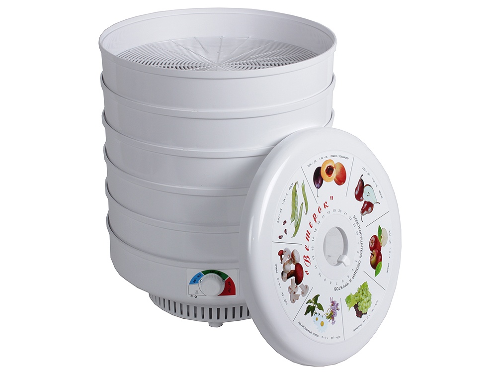 Эта сушилка ветерок 5 поддонов состоит из целых 5 поддонов и в ней одновременно можно сушить до 5 кг фруктов и овощей. Сушилка так же легко моется и не темнеет (не грязнится) со временем.