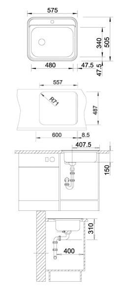 | Размер монтажного отверстия под мойку (ШхГ) | 55.7x48.7 см |