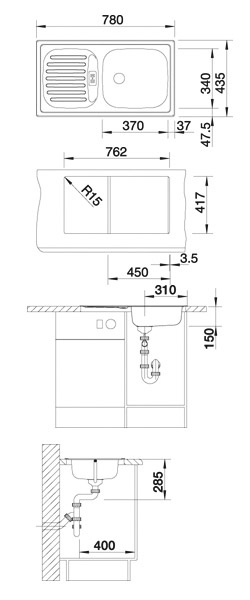 Врезная кухонная мойка прямоугольная полуторная мойка из нержавеющей стали размеры (ШхГ) 58.50х44 см. Укомплектована корзинчатым вентилем Мойка Blanco Andano 340/180-U.