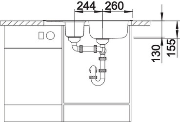 При установке мойки над столешницей учитывать ширину пристенного канта возле стены или пенала.