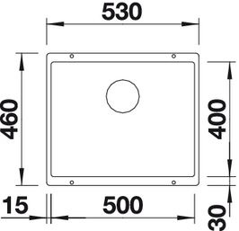 Ширина: 53 см. Глубина: 46 см. Ширина шкафа: 60 см. Угловой радиус: 10 мм. Глубина чаши: 19 см. Материал: гранит. Форма: прямоугольная Крыло: нет