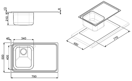 Врезная прямоугольная одночашевая мойка выполнена из нержавеющей стали оснащена крылом оборачиваемая мойка размеры (ШхГ) 78х43.50 см. Эргономичная и удобная мойка Flex.