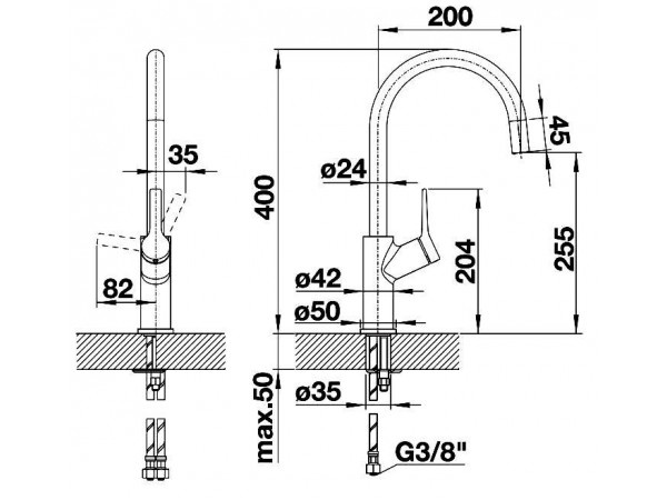 Высокий закругленный излив удобно использовать при работе с посудой, имеющей высокие борты. Модель с боковым однорычажным управлением создаст приятную визуальную гармонию в сочетании с округлой мойкой.