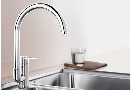 Однозахватный для мойки излив поворотный горизонтальный монтаж Blanco Daras классическая форма смесителя, которая подойдет к любой мойке. Смеситель однорычажный. Прост.