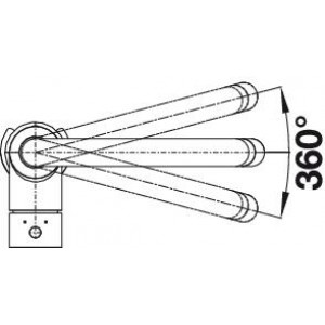 Высокий выдвижной излив модели особенно удобен при использовании глубокой посуды. Угол вращения 360° увеличивает допустимый радиус возможных действий смесителя.