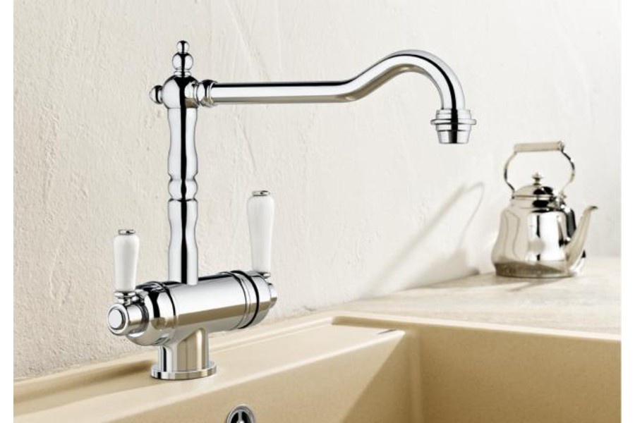Традиционное исполнение и ретро-дизайн отличают модель SORA. Элегантная фурнитура сочетает классический дизайн и удобство управления. Одним из преимуществ смесителя Blanco является возможность подключения фильтра, что значительно повышает комфорт использования.