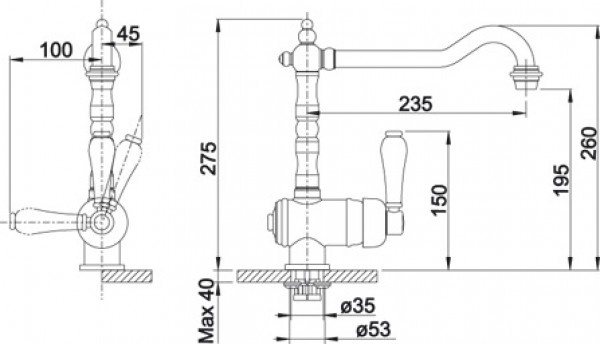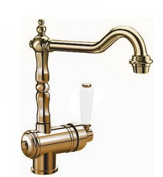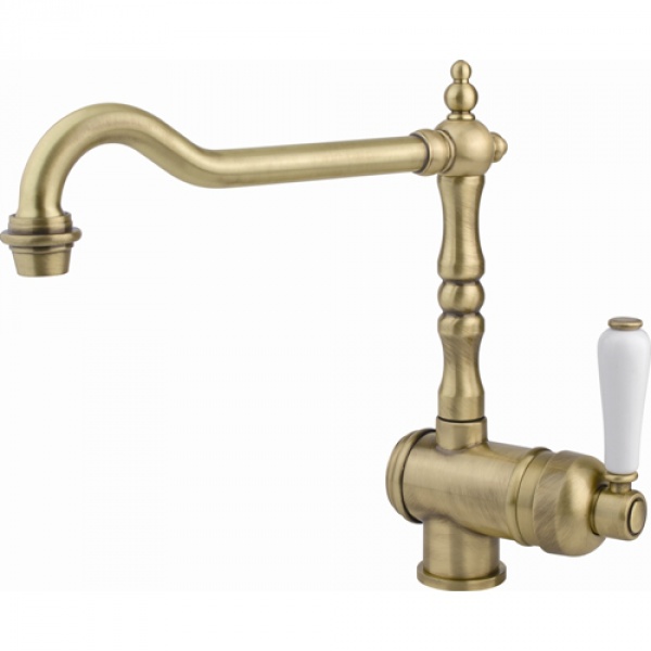 Элегантный кухонный смеситель с корпусом из полированной латуни в винтажном стиле станет изысканным украшением классического интерьера ванной комнаты.