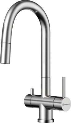 Omoikiri AKITA-S-BN - первый смеситель OMOIKIRI в категории 3 в 1: функция подачи холодной/горячей воды, возможность подключения фильтров для очистки и наличие вытяжного шланга.