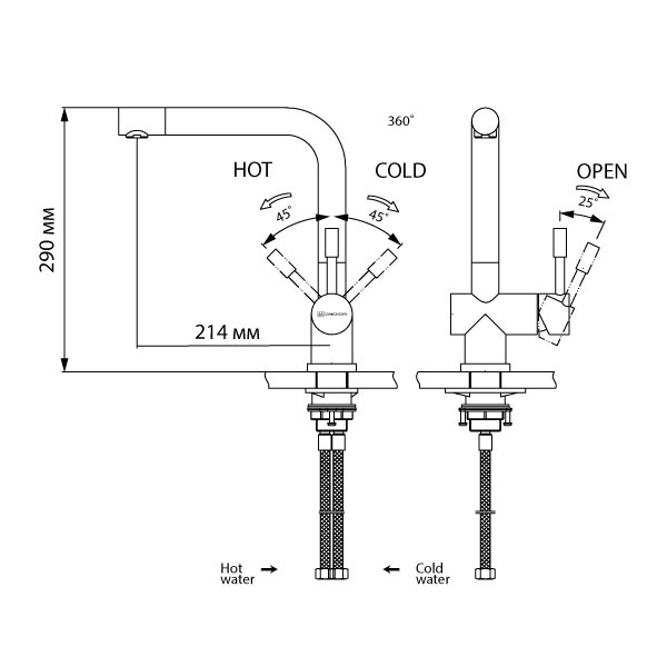 | Соединительные шланги | гибкие, в оплетке из нержавеющей стали |