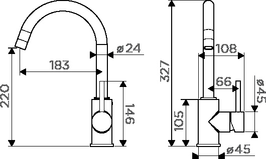 Практичный однорычажный смеситель выполнен в современном стиле и снабжен высоким поворотным изливом.