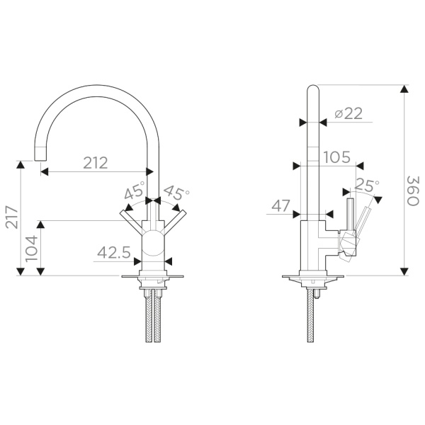 Смеситель Omoikiri WAKAYAMA с высоким изливом произведен из латуни с матовой поверхностью нержавеющая сталь будет выгодно смотреться на мойке из нержавеющей стали или из искусственного камня. Поворотный излив смесителя позволяет вращать его в разные стороны. Для ухода за смесителем достаточно обычной мягкой губки и немного жидкого чистящего средства.