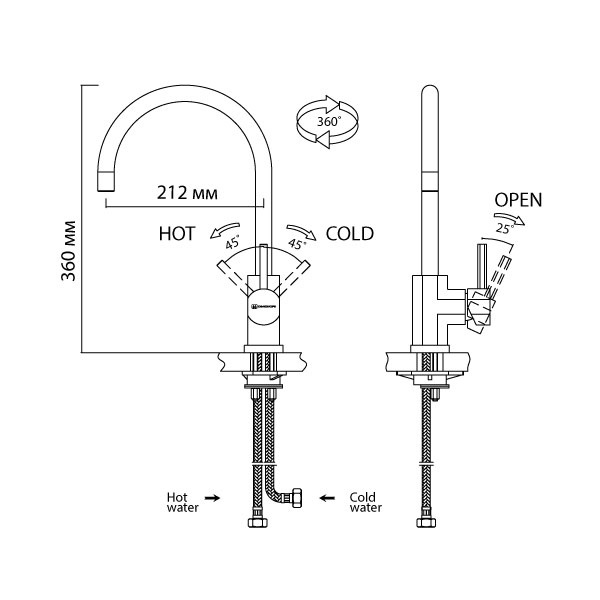 Однозахватный для мойки корпус из латуни излив поворотный насадка-аэратор горизонтальный монтаж Дополнительная информация Современный дизайн и удобство использования.