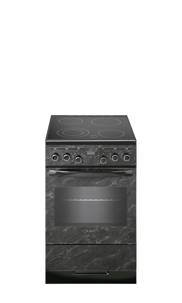Цвет черный с рисунком "мрамор", варочная поверхность стеклокерамическая.