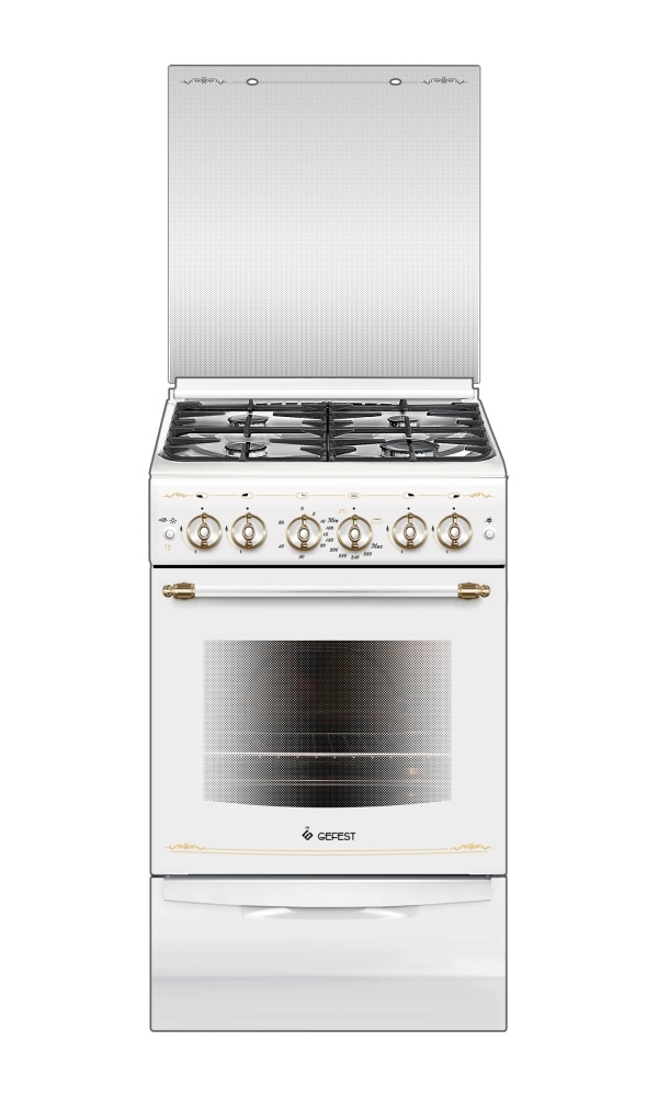 Внимание! Модель не оснащена газ-контролем варочной поверхности! Размеры (ВхШхГ) 85x50x59.4 см. Тип духового шкафа газовый. Объем духовки 70 л. Газ-контроль духовки.
