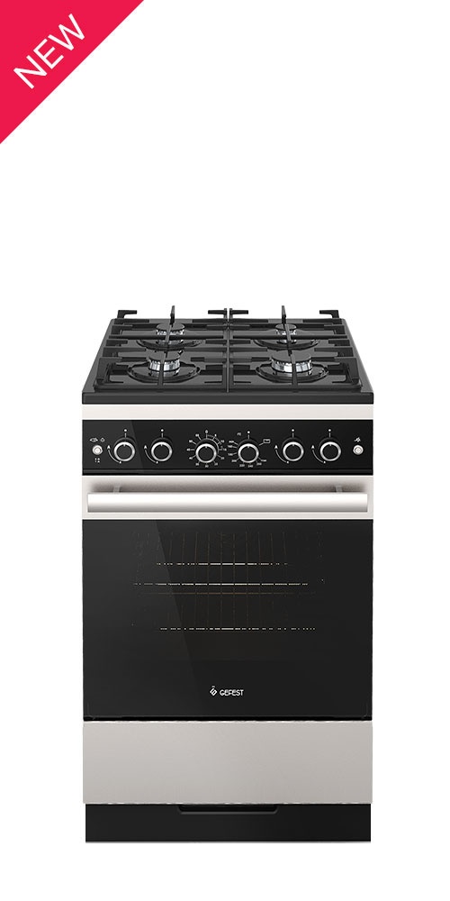 Крышка: стеклянная Габаритные размеры (ШхГхВ): 50x58.5x85 см. Объем духовки: 52 л. Газ-контроль горелок стола. Газ-контроль духовки. Гриль. Съемные проволочные направляющие.