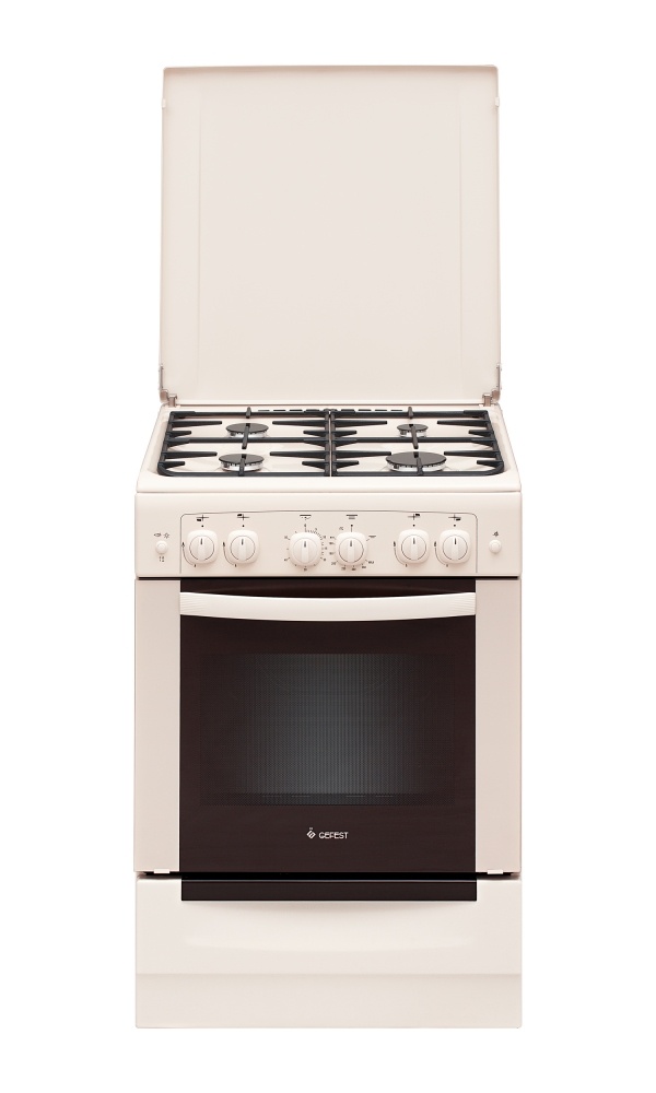 Крышка: стеклянная Габаритные размеры (ШхГхВ): 60x60x85 см. Чугунные решетки горелок стола. Объем духовки: 52 л. Газ-контроль духовки. Электророзжиг горелок, кнопка розжига.