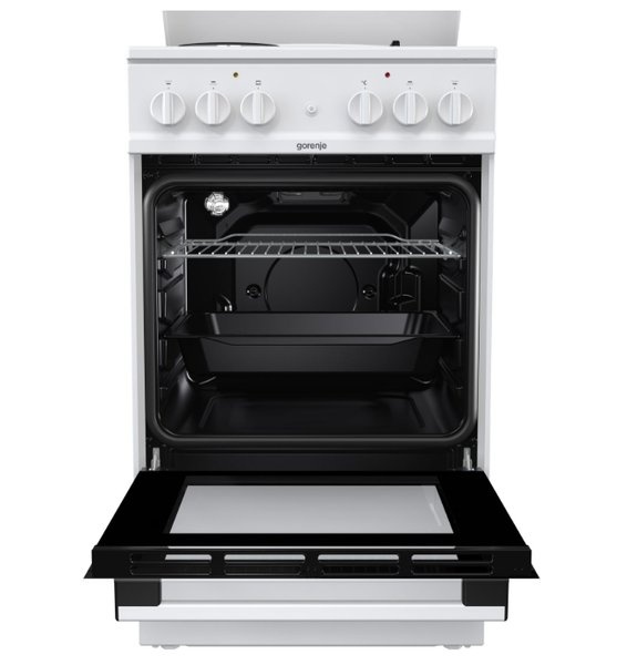 Объем духовки составляет 70 л. Она оснащена термостатом, регулирующим температуру нагрева, и газ-контролем, который гарантирует безопасность использования. Если пламя по какой-то причине погаснет, подача топлива немедленно прекратится.
