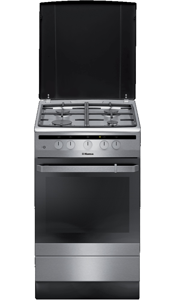 Газовая плита Hansa FCGX 53020 изготовлена из нержавеющей стали и хорошо сочетается с другой техникой современного стиля. Металлическая крышка обеспечивает защиту конфорок от попадания загрязнений, моющих средств и воды при уборке. Поворотные переключатели делают легким управление работой прибора. Терморегулятор в духовке позволяет упростить процесс готовки, так как можно задать время до окончания запекания.