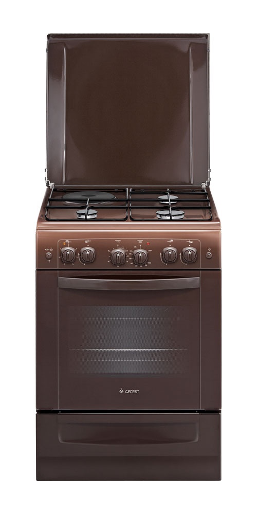 Цвет коричневый, варочная поверхность - эмалированная.