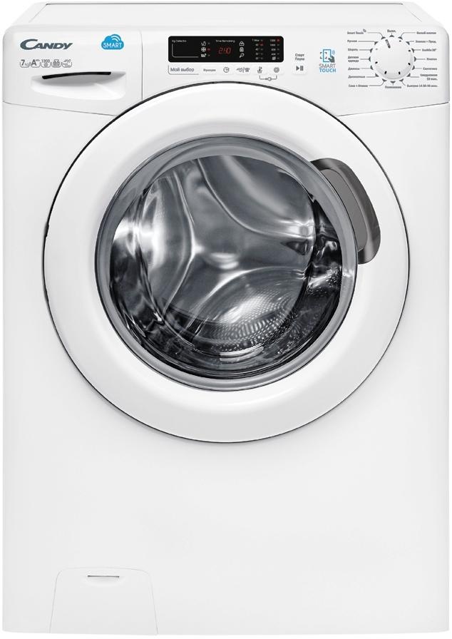 Программы Канди CS4 1272D3 разделяются по типам ткани — хлопок, смесовые ткани, синтетика, деликатные ткани, шерсть — а также по интенсивности и продолжительности режимов. Так, для хлопка есть три разные программы с разной температурой стирки, длительностью цикла и скоростью отжима.