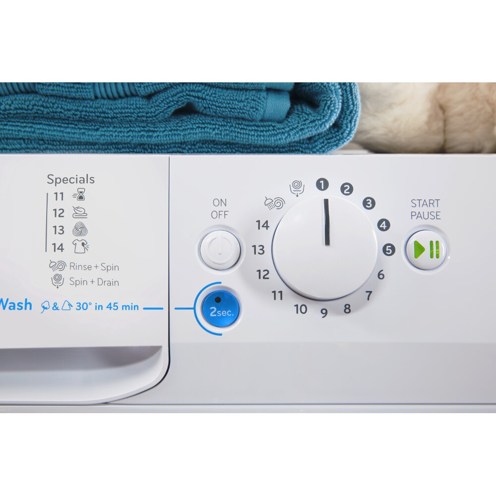 Технология Push&Wash предлагает уникальный способ запуска стирки: всего одним нажатием кнопки. Всего за 45 минут стиральная машина удалит 20 наиболее распространенных видов пятен, без необходимости предварительной обработки тканей.