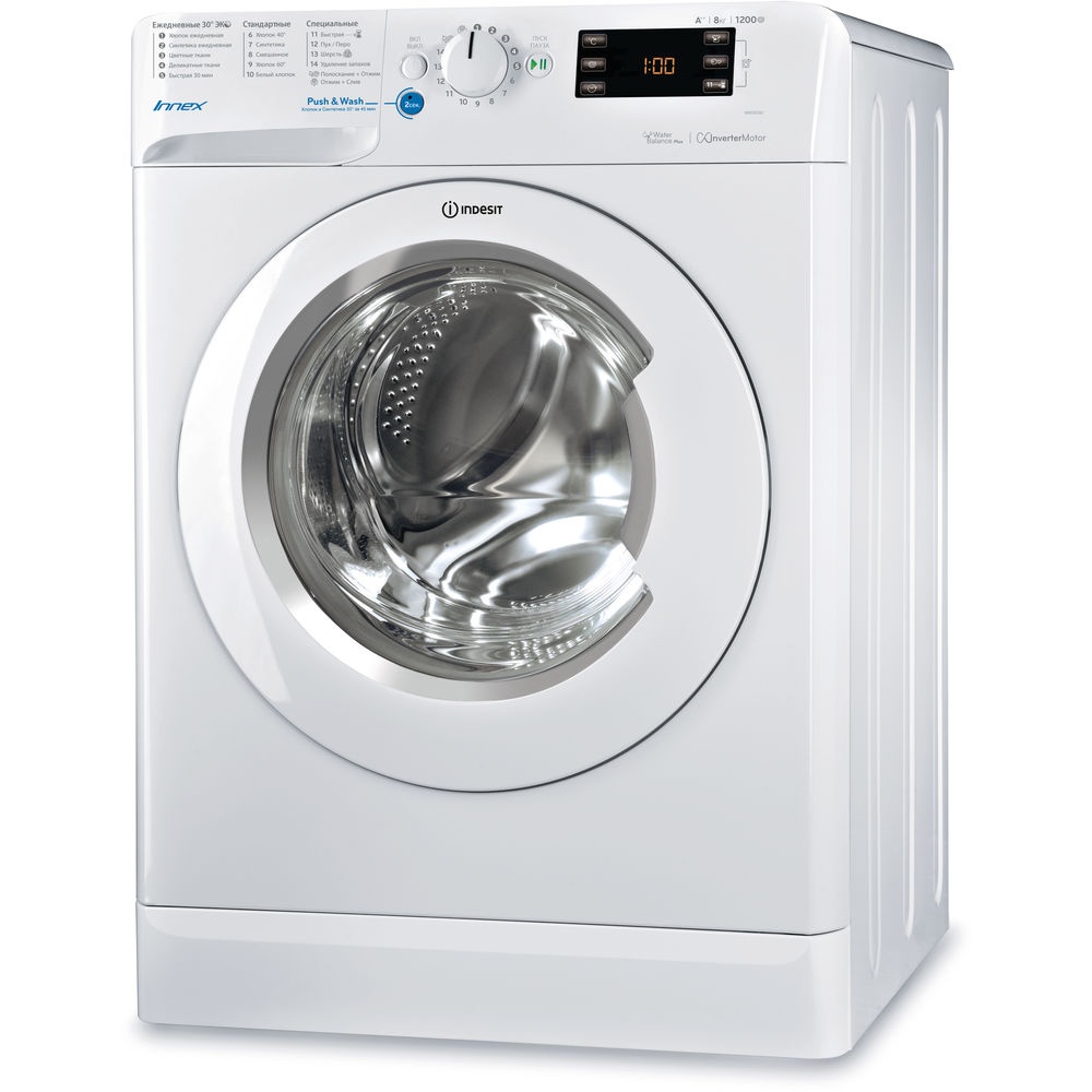 Характеристики отдельно стоящей стиральной машины Indesit с горизонтальной загрузкой: отличная вместимость 7 кг. Белый цвет.
