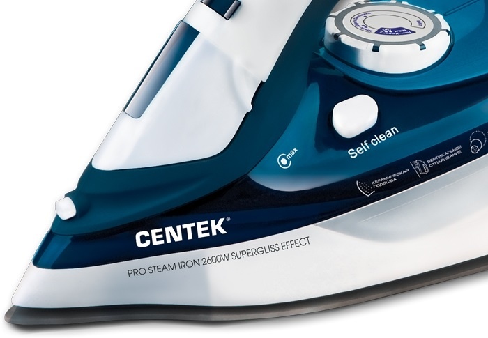 Утюг Centek CT-2327 порадует каждую хозяйку наличием керамической подошвы, которая гарантирует невероятно легкое скольжение по всем типам тканей, не оставляя при этом блестящих следов. С функцией мощного парового удара у вас появится возможность в считанные секунды справиться с наиболее непокорными складками, приложив минимум усилий.