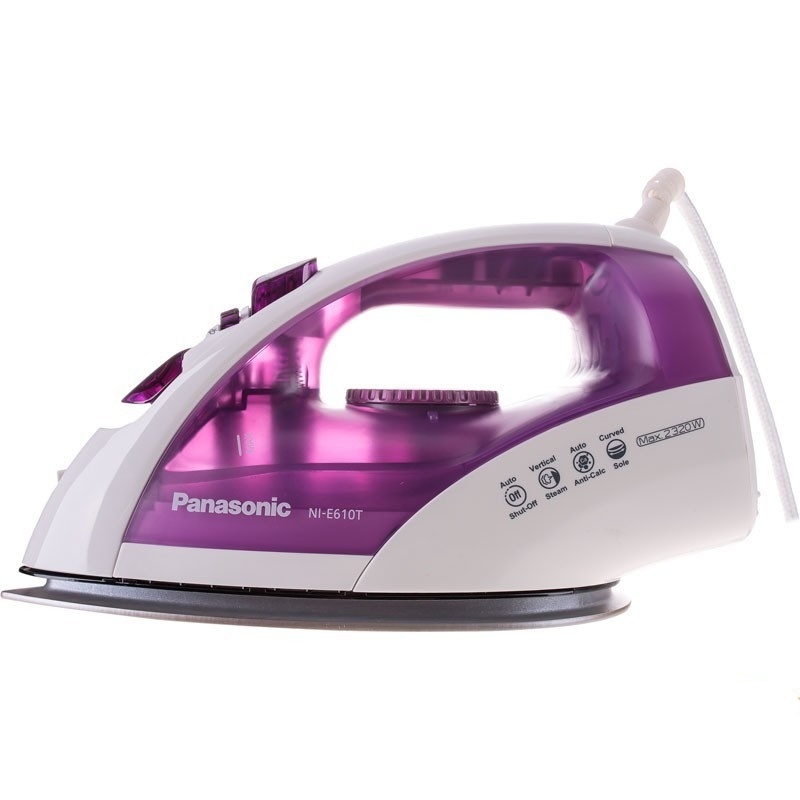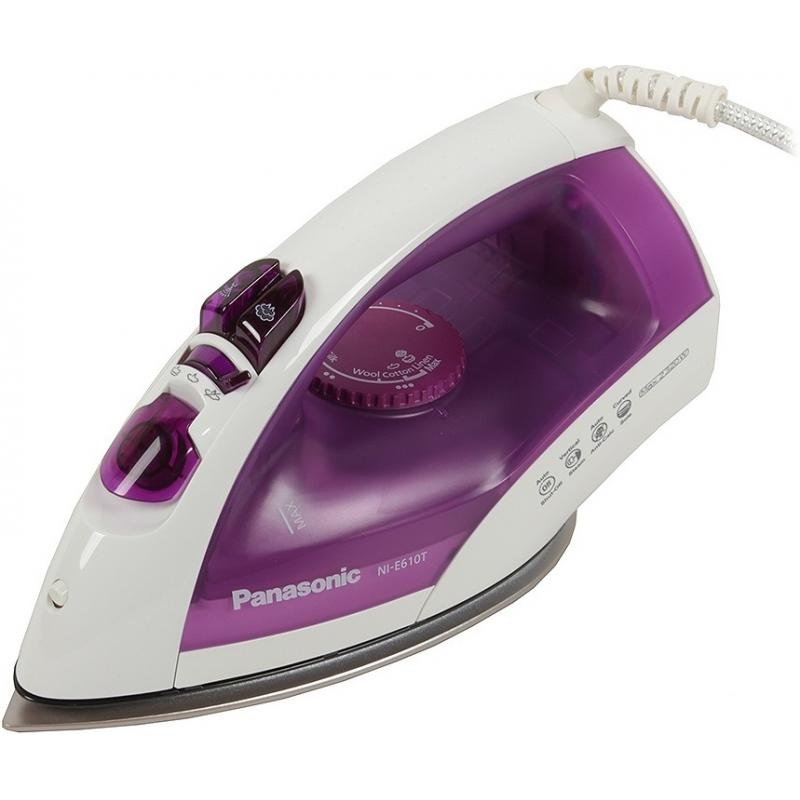 Утюг Panasonic NI-E610TVTW на титановой подошве, которая не мнет при глажении ткань, отличается эффективностью (утюг потребляет в час 2.38 кВт энергии) и набором функций.