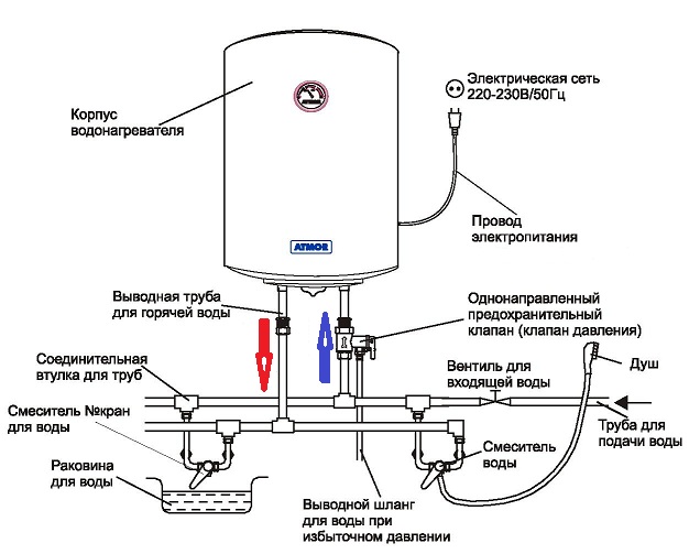 Сами электрические водонагреватели (ЭВН) встречаются как проточными, так и накопительными. Последние представляют собой электрочайники большого (до 100 л) объема, в корпусах которых ТЭНы (трубчатые электронагреватели) и нагревают воду до точно заданной температуры. Расход энергии в данных видах устройство минимален, поскольку они оснащаются теплоизоляцией в виде твердого пенопласта.