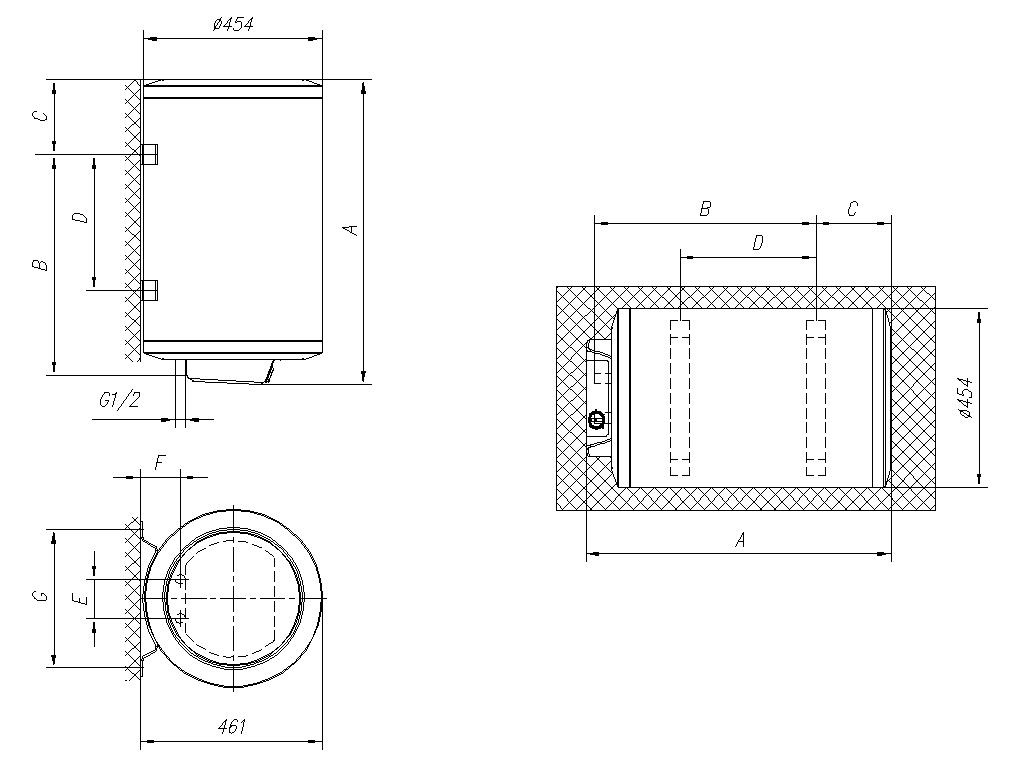 Водонагреватели объемом от 50 до 200 литров можно устанавливать на стену вертикально или горизонтально, как вам удобнее.