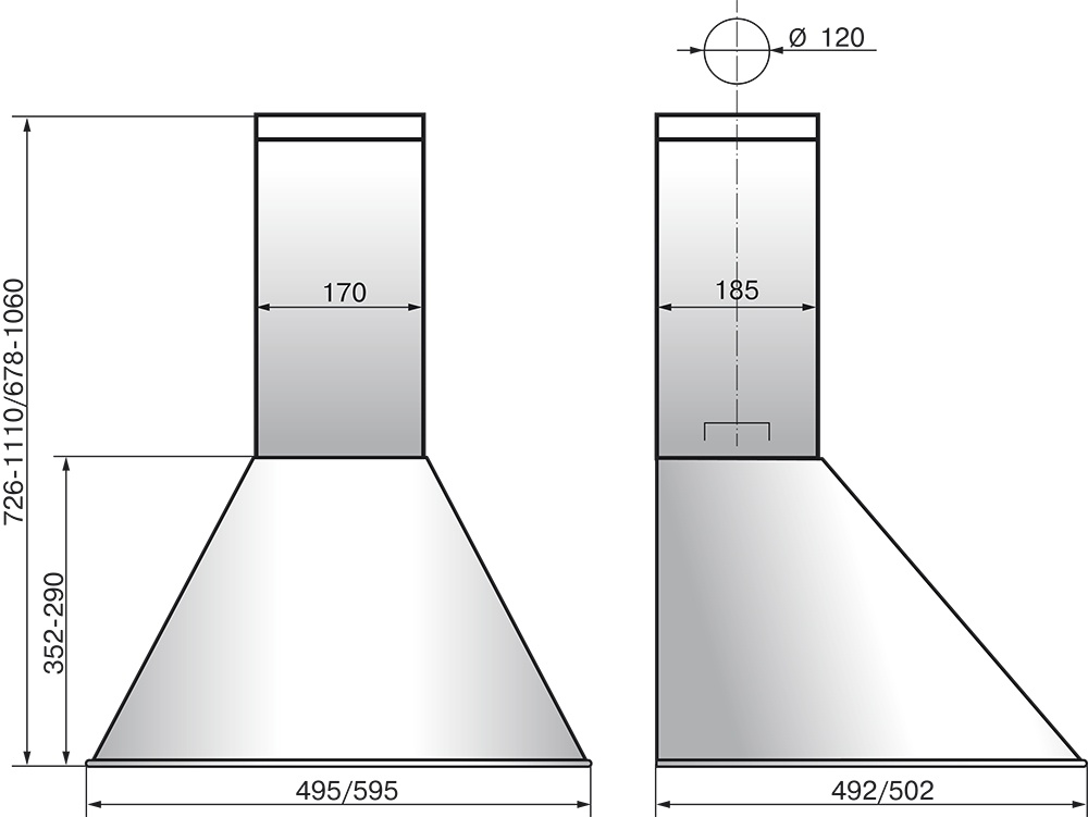 Классический полукруглый купол вытяжки позволяет ее интегрировать в дизайн любой кухни.