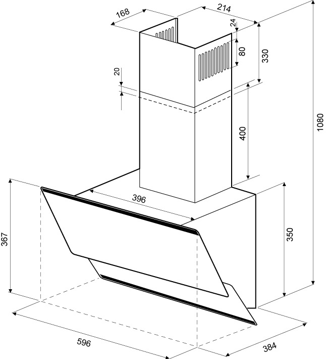 Наклонная вытяжка каминная вытяжка монтируется к стене отвод /циркуляция для стандартных кухонь ширина для установки 60 см мощность 285 Вт. Эргономичный наклонный дизайн.
