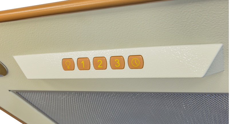 Наличие отличной мощности (800 м³/час), 3 скоростей и яркой подсветки делают эту вытяжку незаменимым помощником. Вытяжка выполнена в бежевом цвете с отделкой бронзового цвета и она может работать не только в режиме отвода в вентиляцию, но и в режиме рециркуляции.