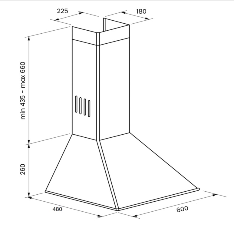 | Размеры вытяжки (ВхШхГ) | 920x600x480 мм |